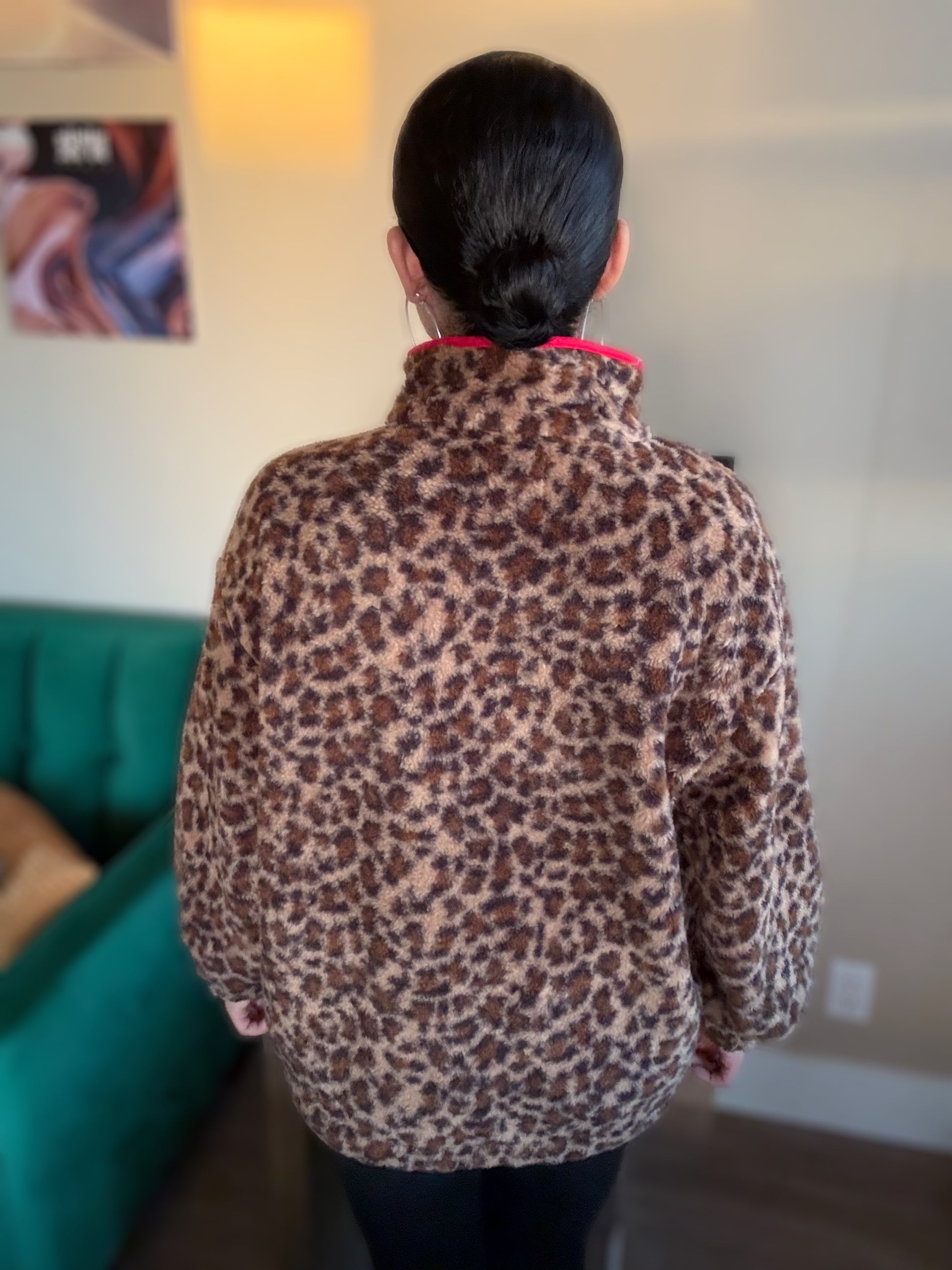 Cheetah Print Half Zip Fleece Pullover